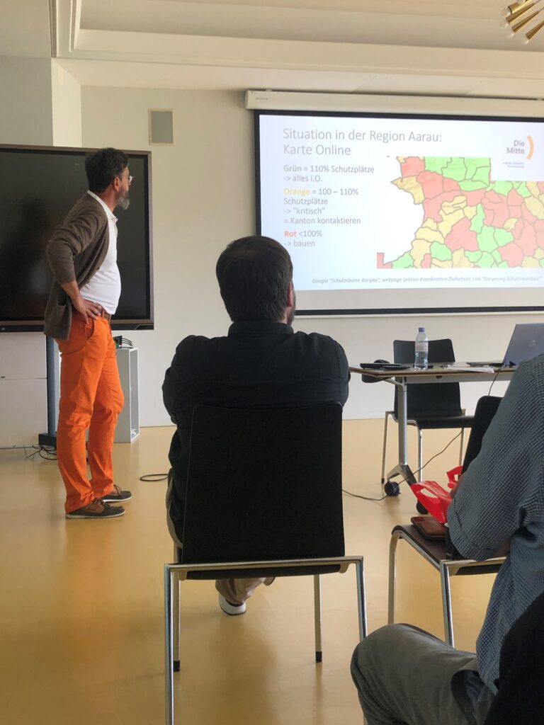 Nach der Generalversammlung fanden zwei Vorträgen von Etienne Huber und Dieter Wicki statt zu folgenden Fragen: Wie weiter mit der Schweizer Sicherheitspolitik? Wie sicher sind die Menschen in der Region Aarau vor den Folgen des Ukraine-Krieges? Welche Notvorräte sind in der Schweiz verfügbar? Wie steht es um die Schutzräume in unserer Region? Ein reger Austausch über diese aktuellen Themen entstand.